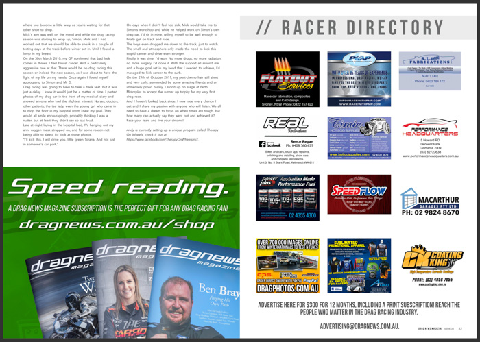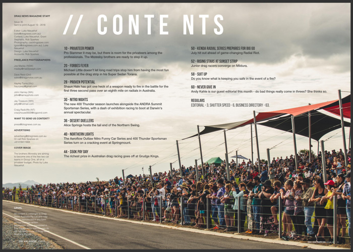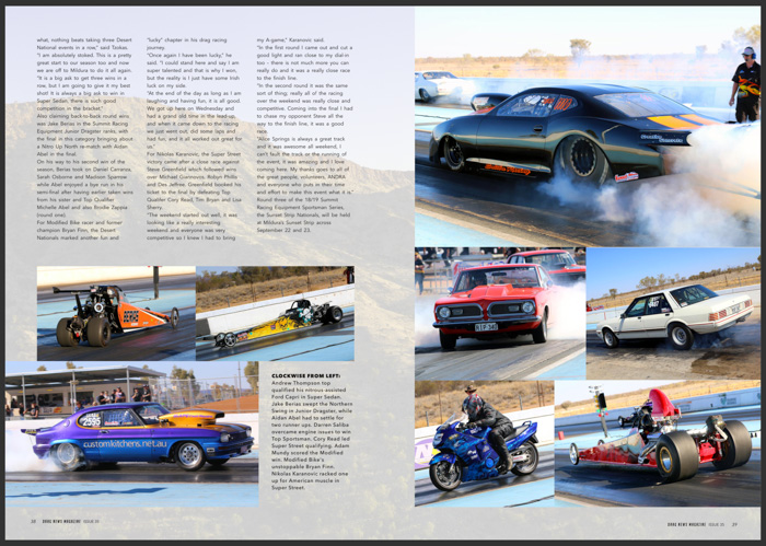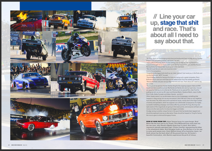 Are you in Drag News Magazine #35? If you were racing in Darwin, Alice Springs, Springmount, Mildura, Sydney or Willowbank recently you might be!