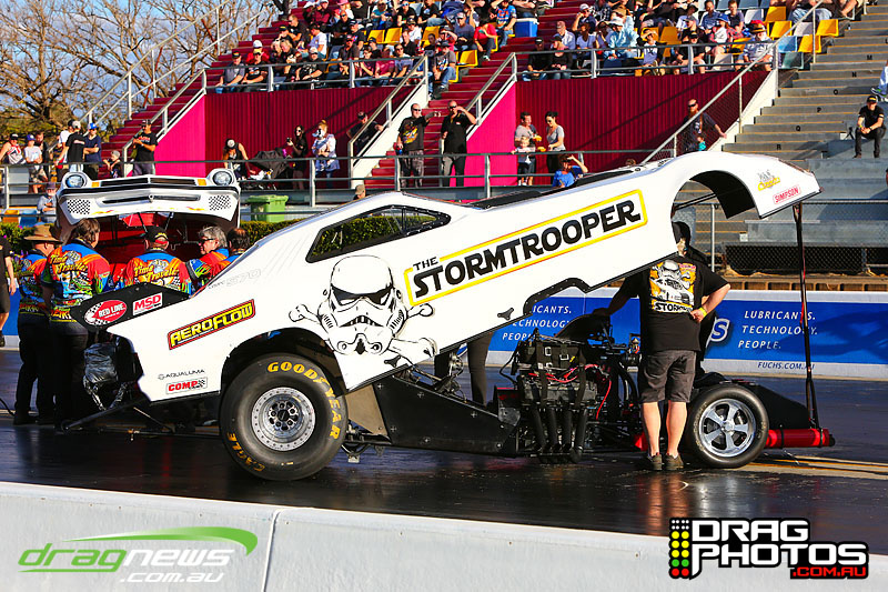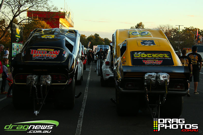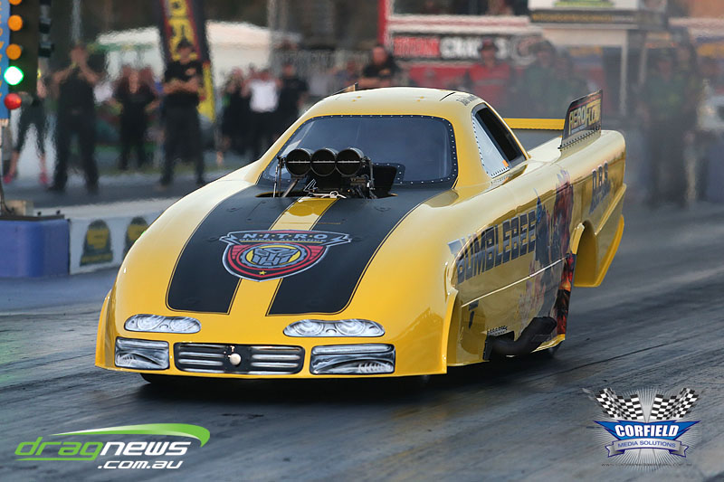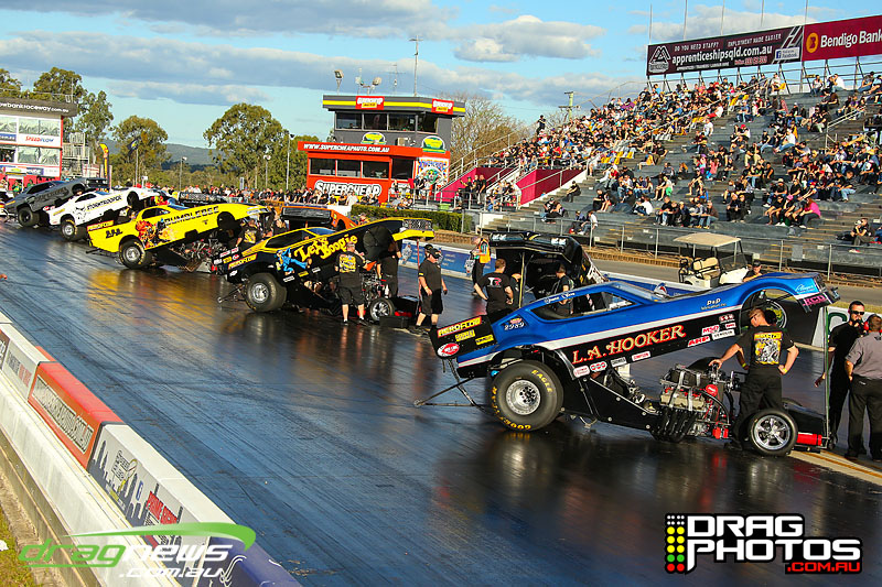 Finally Willowbank Raceway gets to feel the noise of 11 Nitro floppers and two wheelstanders rocking the house.