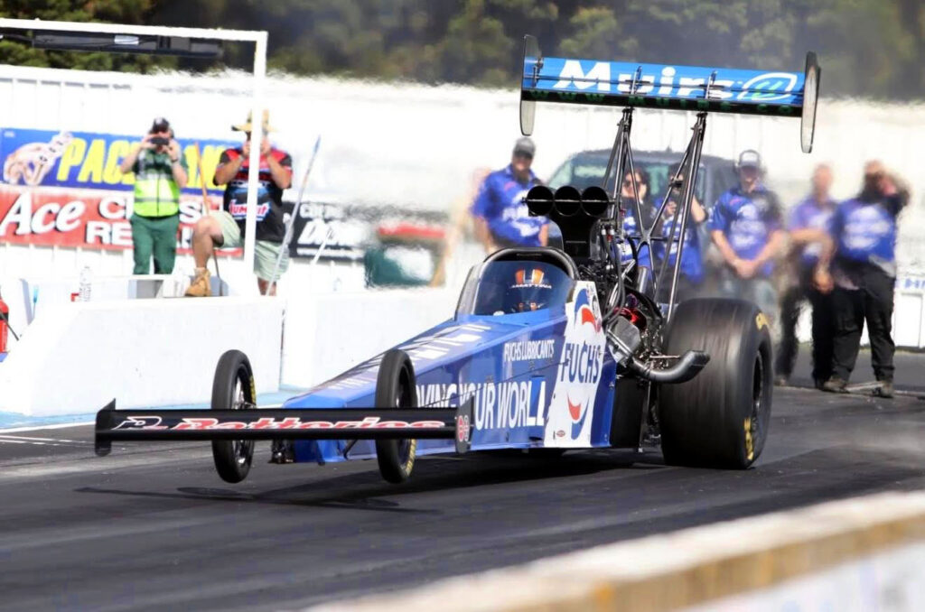 LTFR smashed the South Coast Raceway track record not once, but twice over the weekend at the venue’s 20th Anniversary Spectacular. In a handy hit-out ahead of the opening round of the NDRC Top Fuel Championship in a few weeks’ time, the FUCHS Lubricants dragster laid down a blistering 3.33s pass before backing it up with an even quicker 3.261s at 219.41mph, resetting the track benchmark yet again.